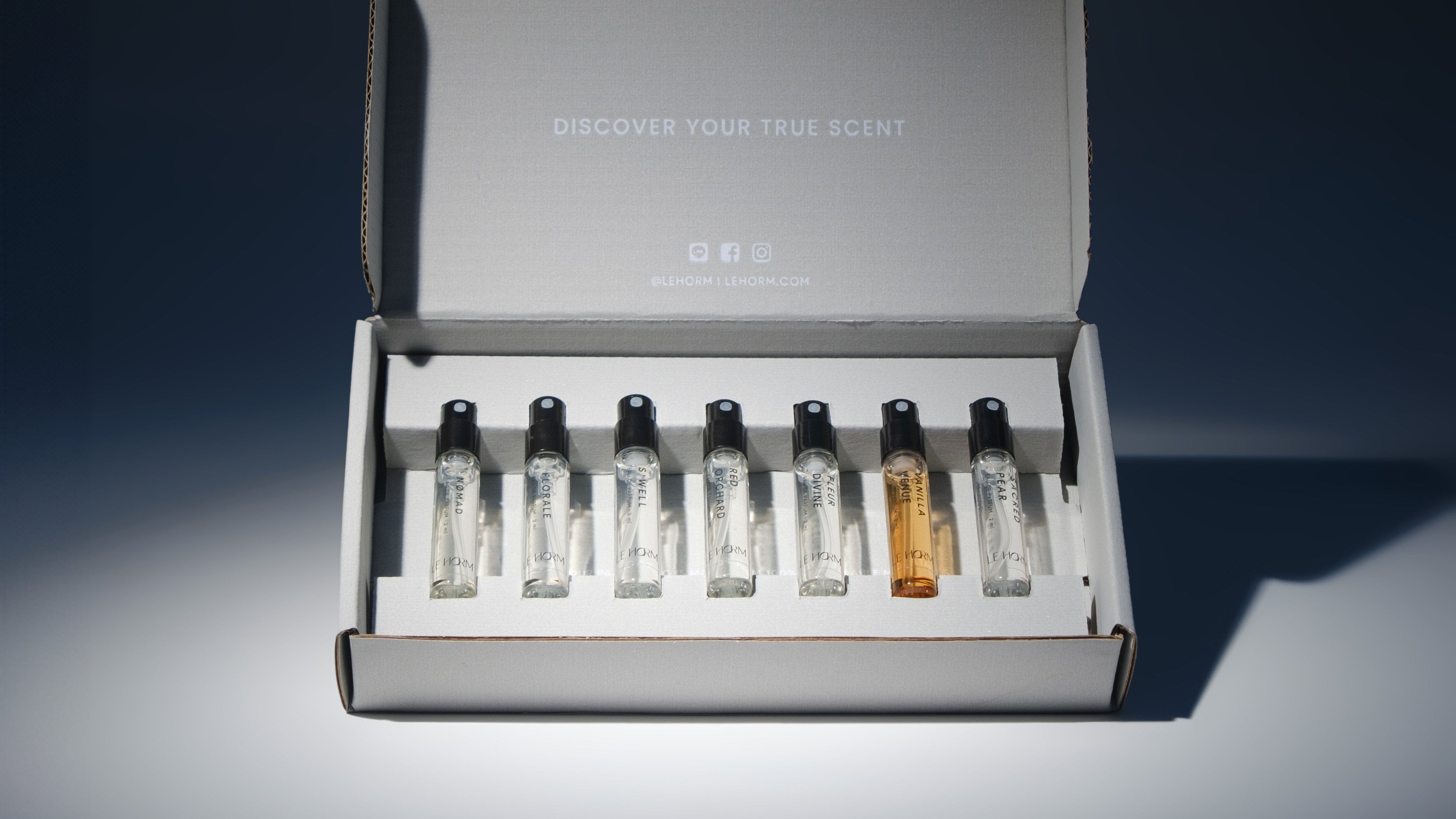 Set includes 7 sample size (2 ml) from each of our scent Nømad, S'well, Florale, Fleur Divine, Red Orchard, Vanilla Venue and Sacréd Pear. This allows you to find the perfect scent.